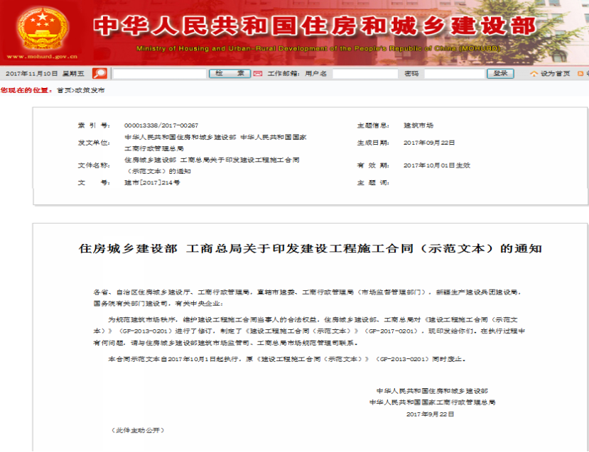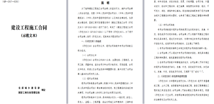 近日,住建部、工商總局對2013版《建設工程施工合同(示范文本)》進行了修訂,制定了《建設工程施工合同(示范文本)》(GF-2017-0201)。2017版《示范文本》,自2017年10月1日起執行。
