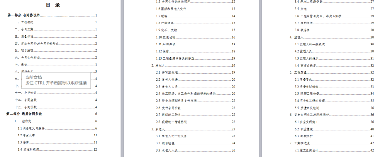 通用合同條款共計20條,具體條款分別為:一般約定、發包人、承包人、監理人、工程質量、安全文明施工與環境保護、工期和進度、材料與設備、試驗與檢驗、變更、價格調整、合同價格、計量與支付、驗收和工程試車、竣工結算、缺陷責任與保修、違約、不可抗力、保險、索賠和爭議解決。前述條款安排既考慮了現行法律法規對工程建設的有關要求,也考慮了建設工程施工管理的特殊需要。