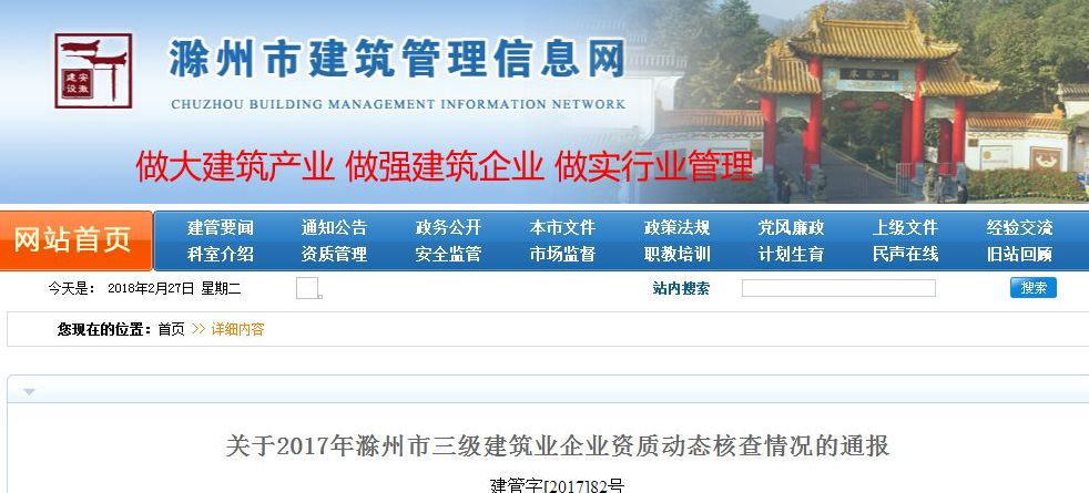 18 | 滁州開順建筑工程有限公司 | 基本合格 | 缺少的建造師正在注冊 |