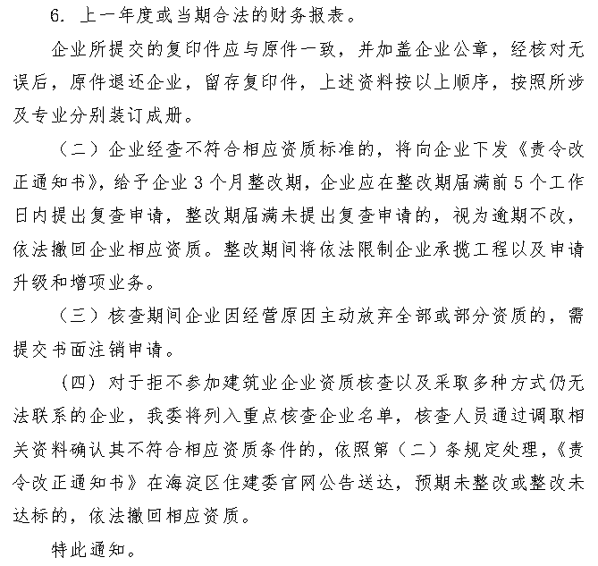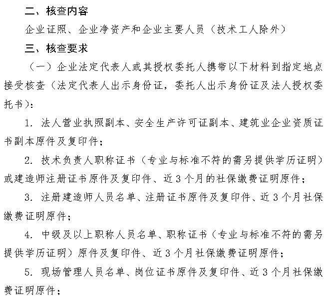 (一)被核查企業提供書面材料將企業基本信息、人員信息會同以下材料一并遞交區建筑業管理所資質資格監管室: