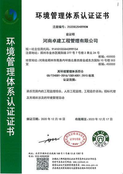 環境管理體系認證證書